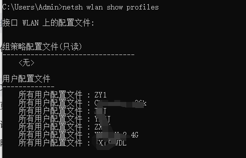 ## 打开cmd ## 获取所有wlan信息 netsh wlan show profiles